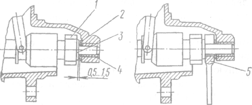 1 — шестерня привода; 2 — шайба упорная; 3- втулка привода; 4 — вкладыш со стороны привода; 5 — прокладка