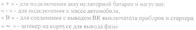 На генераторе имеются следующие выводы: