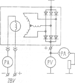 Рис. 117. Схема соединений при проверке технического состояния генератора