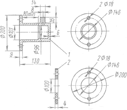 Изношенное посадочное отверстие под подшипник в крышке со стороны контактных колец до диаметра более 35,02 мм, а в крышке со стороны привода — более 47,05 мм обработайте до размера 38,0…38,05 мм и 50,00…50,05 мм соответственно и затем запрессуйте ремонтное кольцо с сохранением в нем прежнего посадочного размера под подшипник.